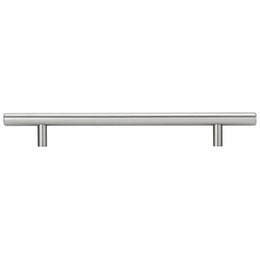 This contemporary bar pull from Richelieu Hardware in brushed stainless steel with its simple design gives a modern feel that blends well with any kitchen or bathroom decor.