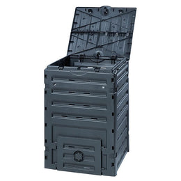 Collect kitchen scraps and yard waste, then turn them into fertile food for your garden with the ECO-master Composter. This basic composter has sidewalls that snap together permanently a large top lid to put your waste in and two doors at the bottom to remove the decomposed material.