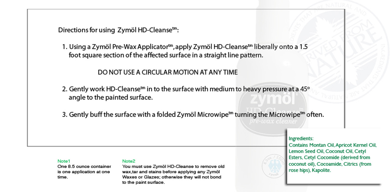 - Product Name: Zymol CS201 Pre-Wax Advance HD-Cleanse